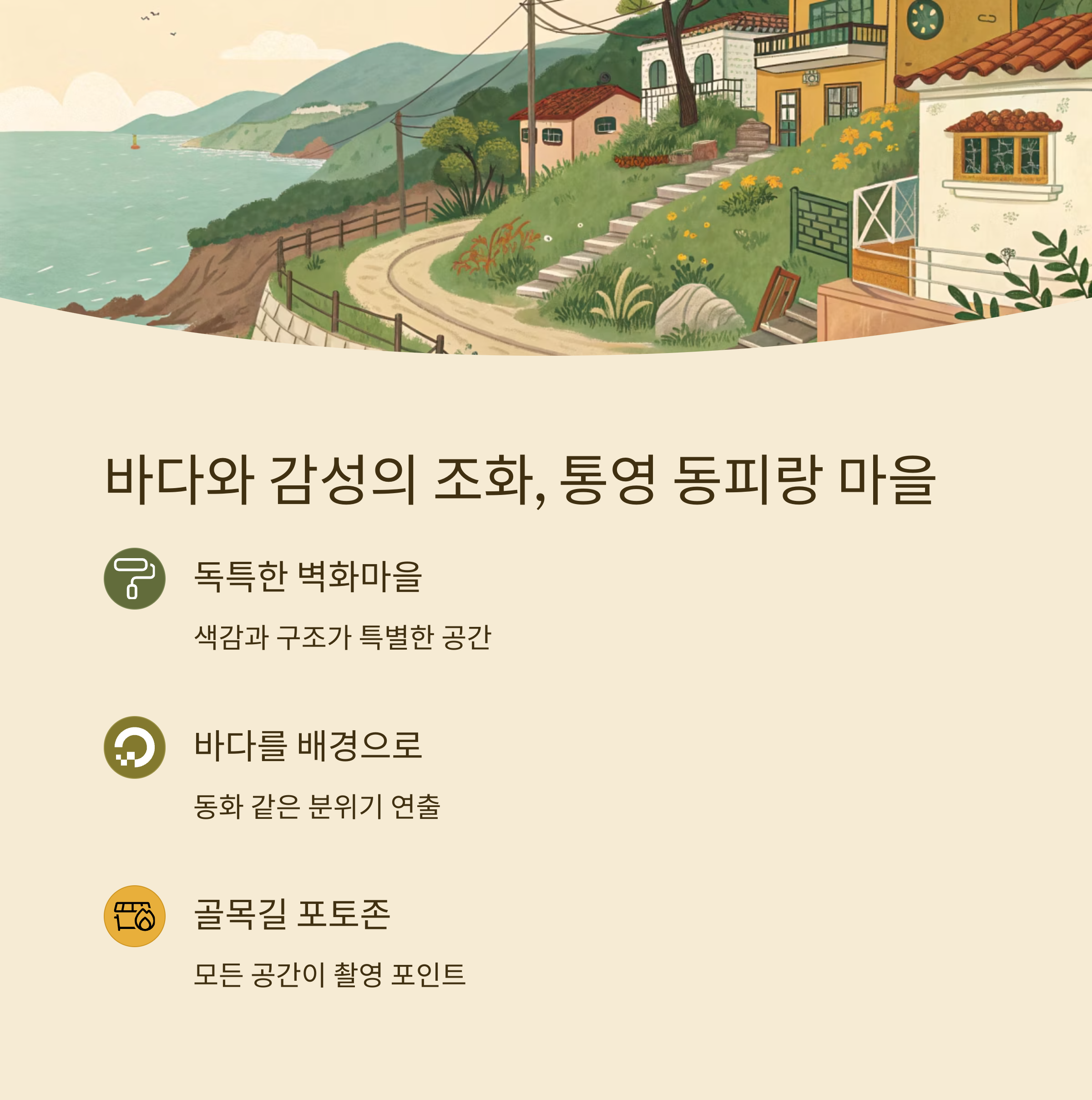 | 통영 동피랑 마을 | 벽화/바다 | 봄~가을 |