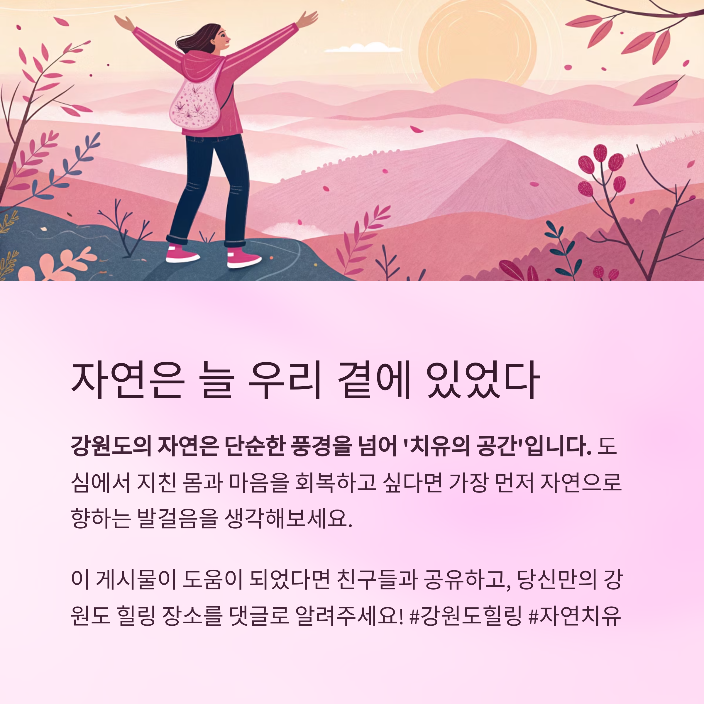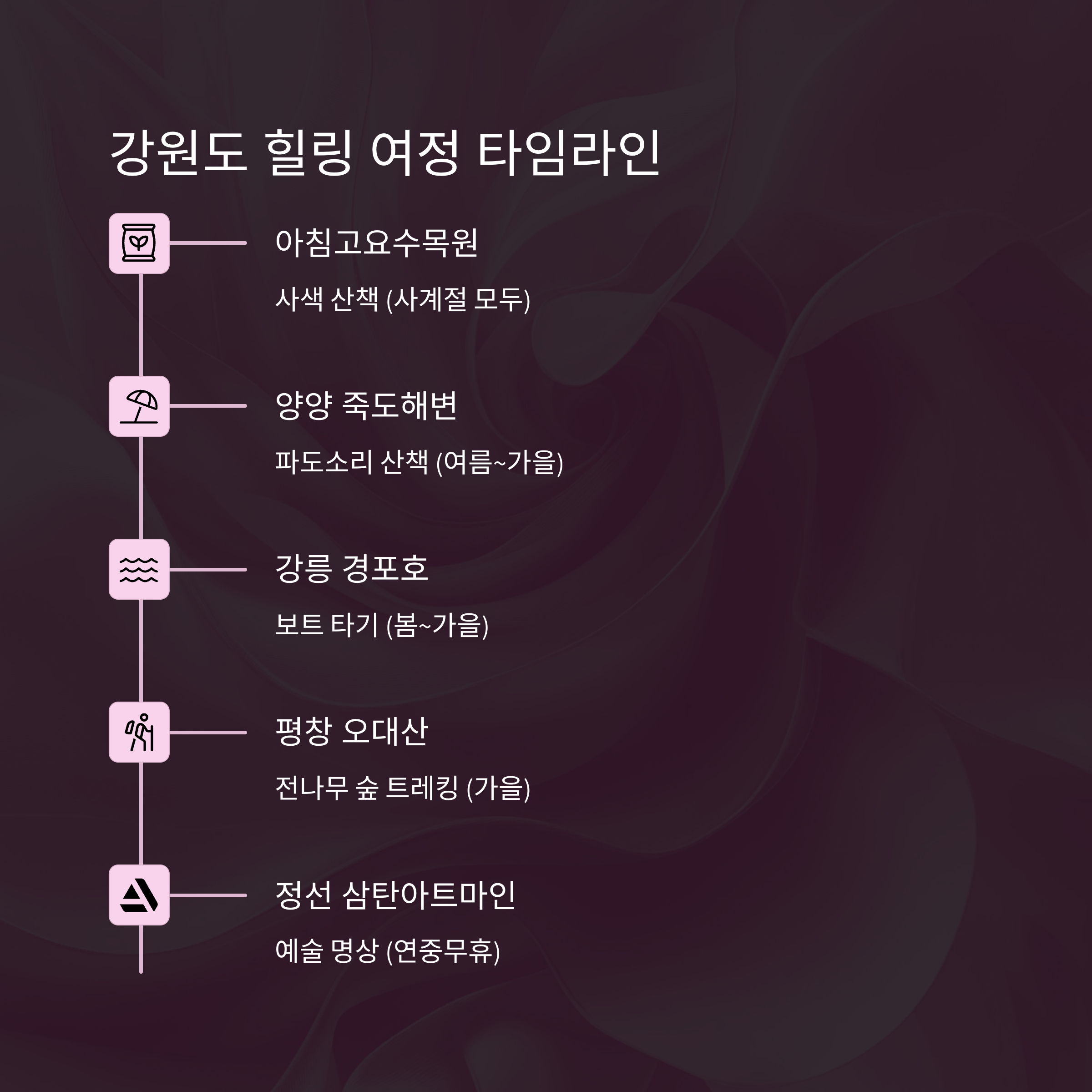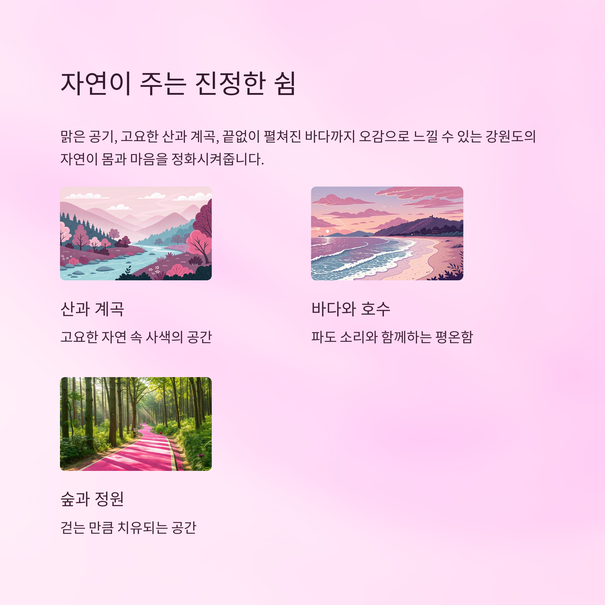 강원도의 자연은 단순한 풍경을 넘어 '치유의 공간'입니다.