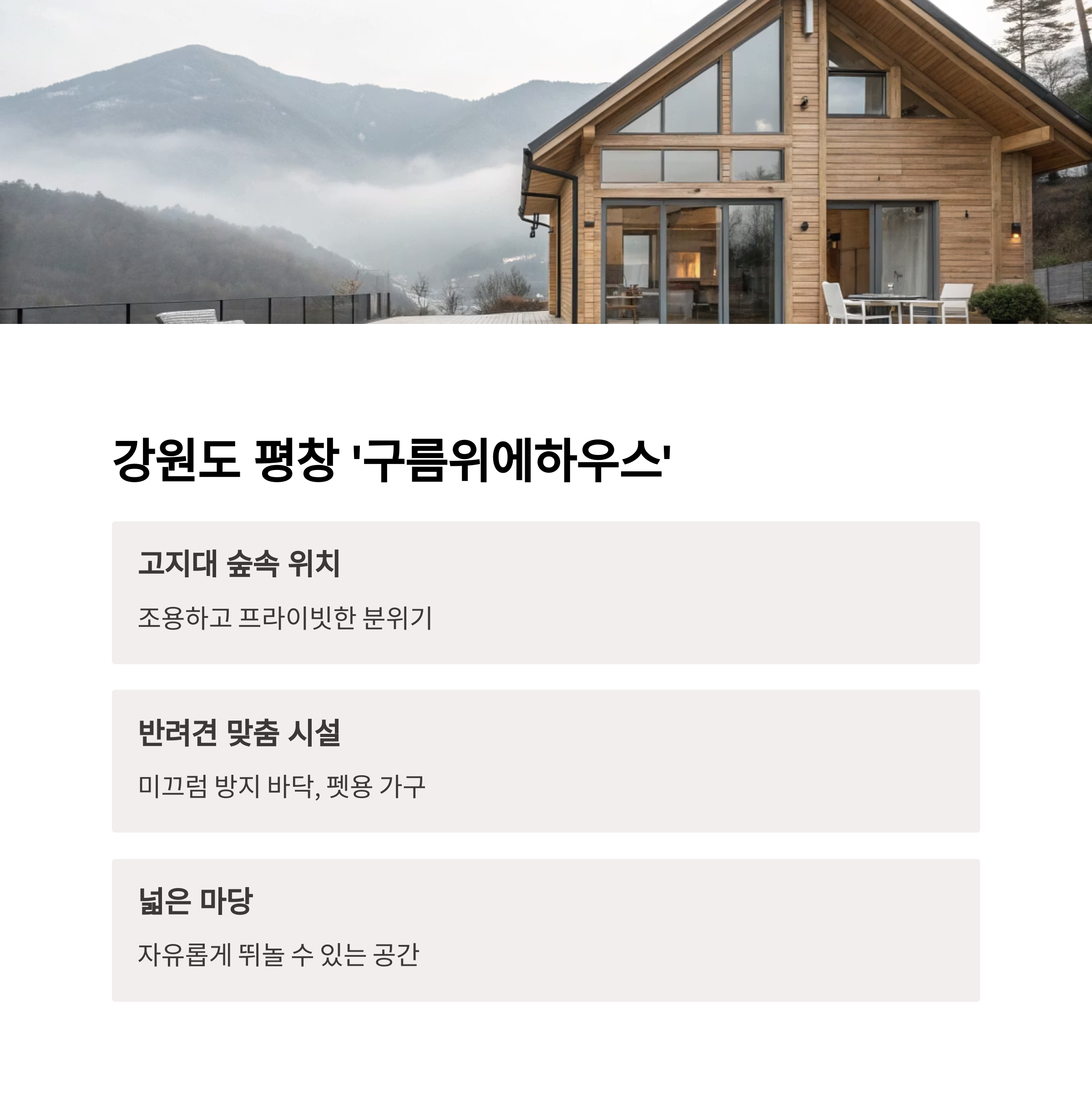 | 강원 평창 | 구름위에하우스 | 숲속 힐링, 펫 전용 가구 |