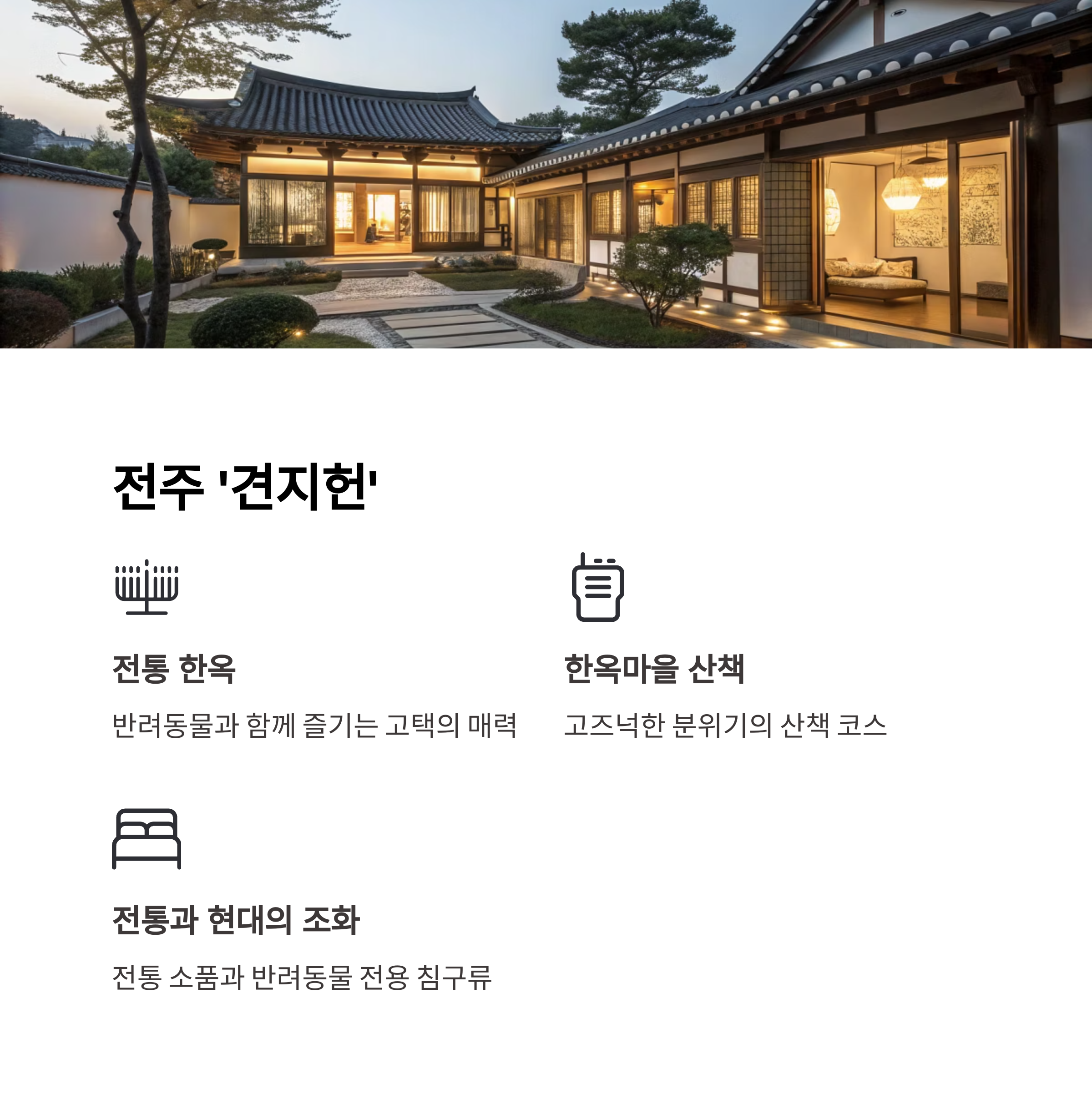 "반려견과 함께 고즈넉한 한옥마을 산책을" 즐기고 싶은 분들께 추천드립니다.