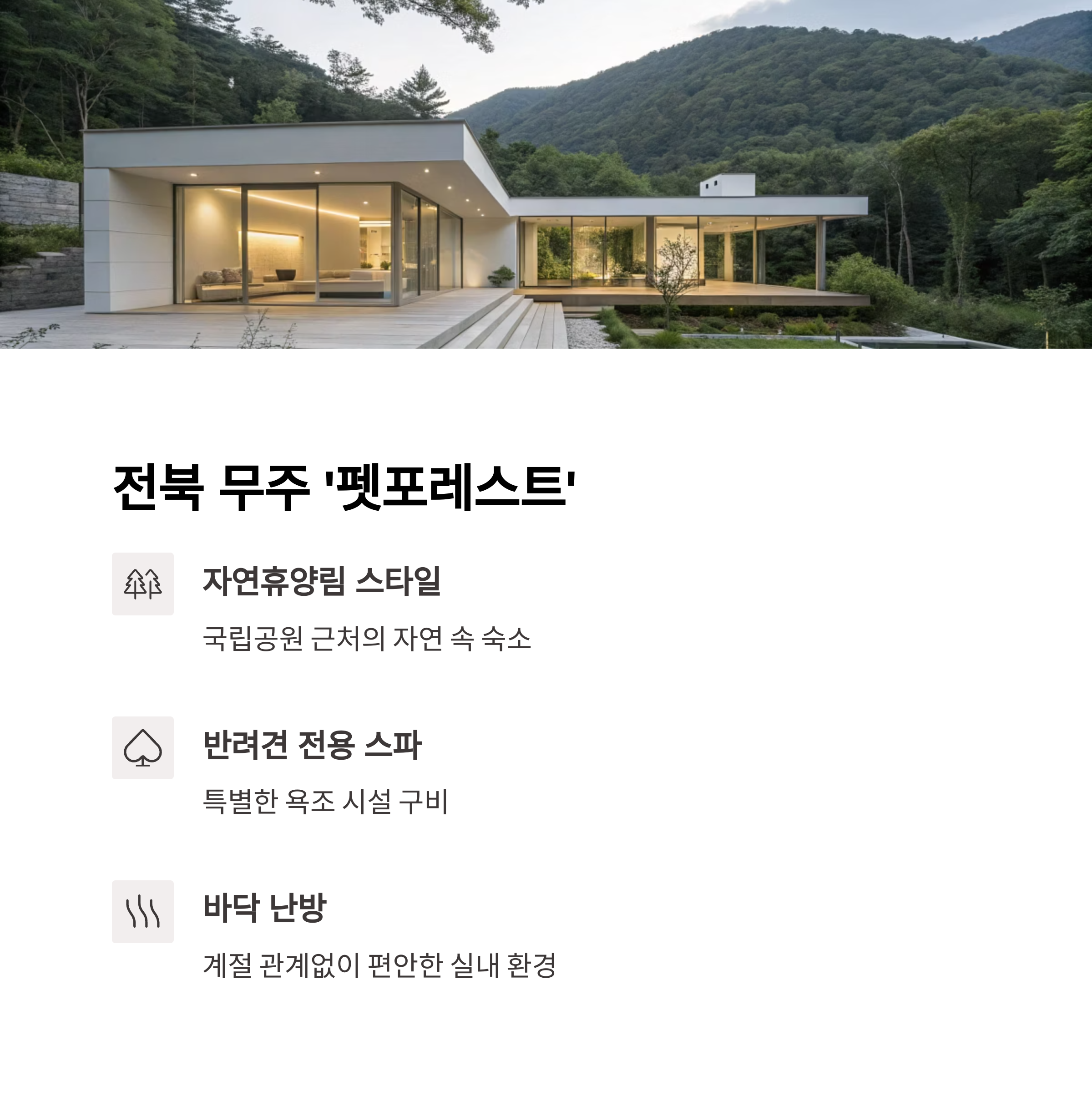 | 전북 무주 | 펫포레스트 | 스파 욕조, 난방 |