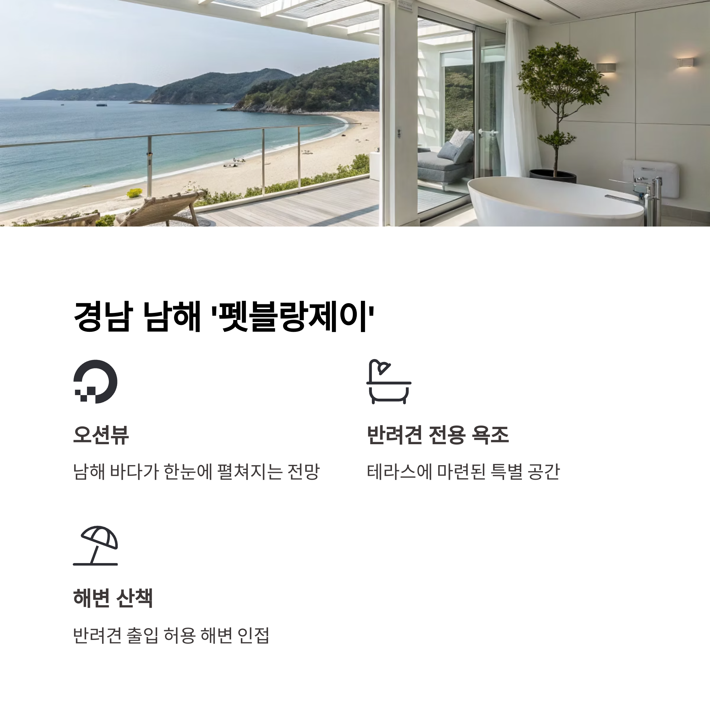 | 경남 남해 | 펫블랑제이 | 오션뷰, 해변 산책 |