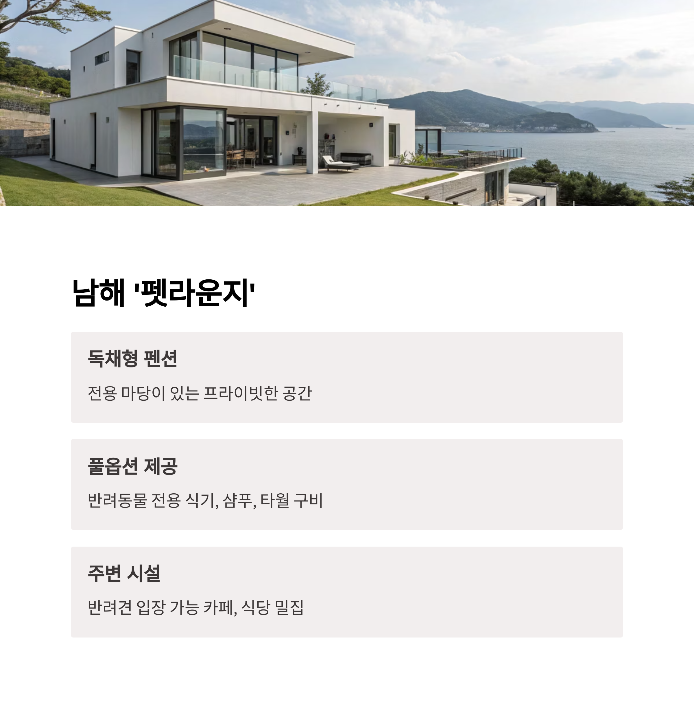 | 남해 | 펫라운지 | 독채형, 풀옵션 |