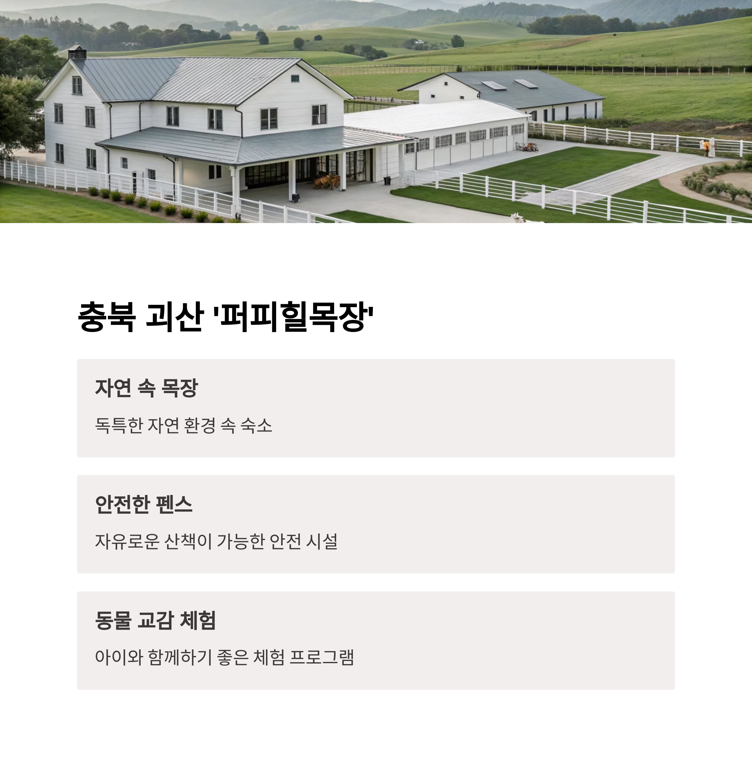 | 충북 괴산 | 퍼피힐목장 | 목장, 체험형 |
