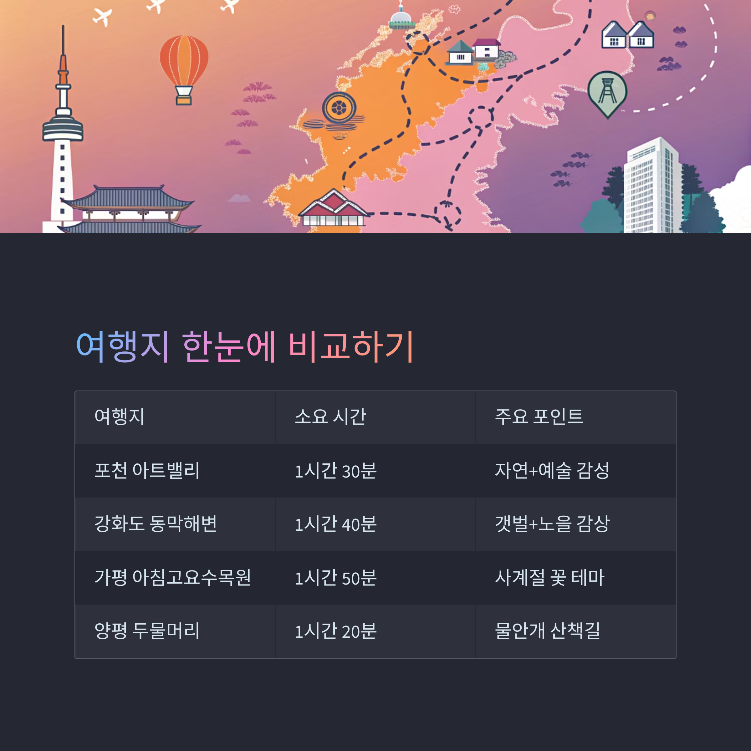 여행지 소요 시간(서울 기준) 주요 포인트