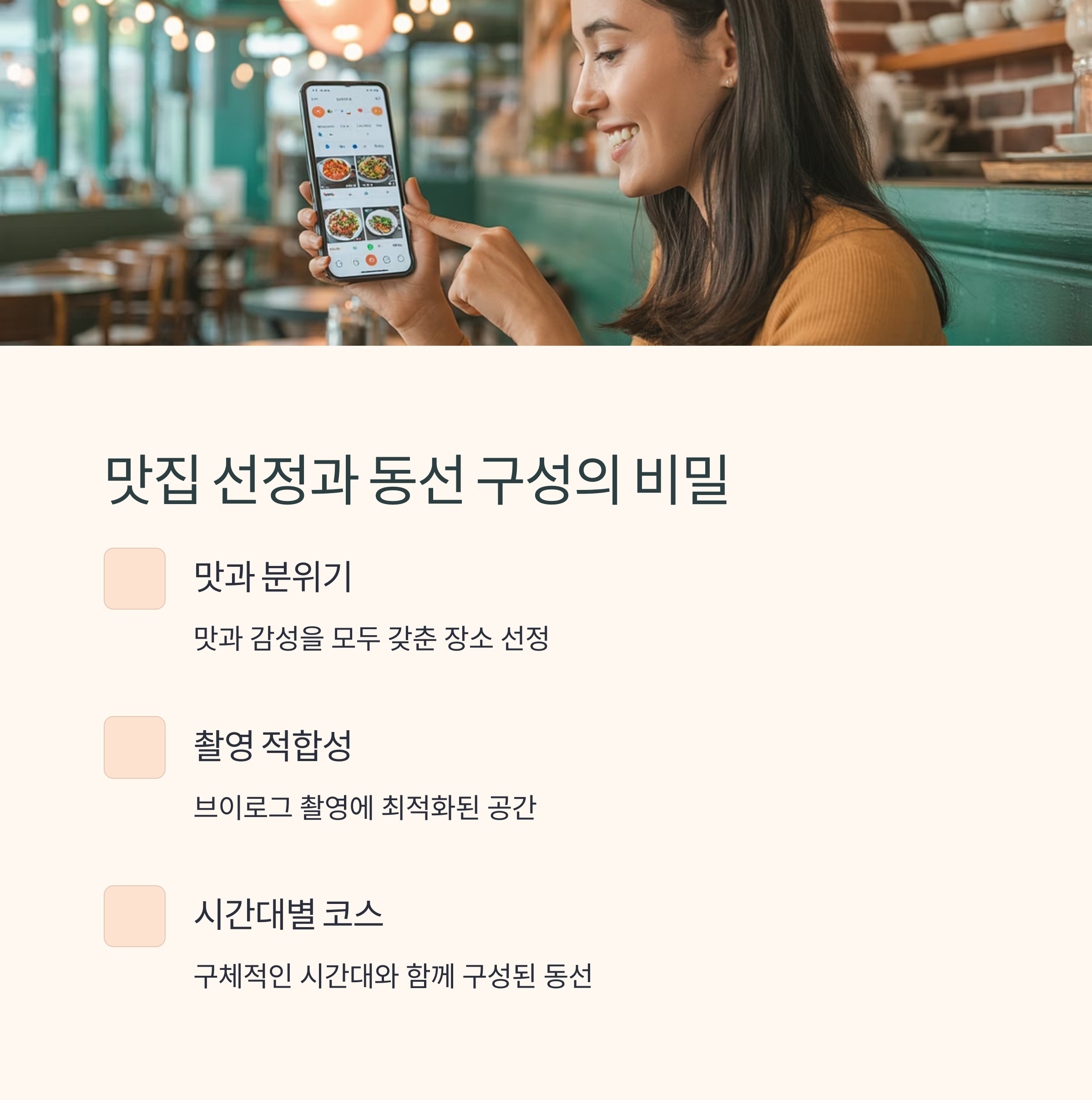 가장 신경 쓰는 부분 중 하나가 바로 맛집 선정과 동선 구성입니다.