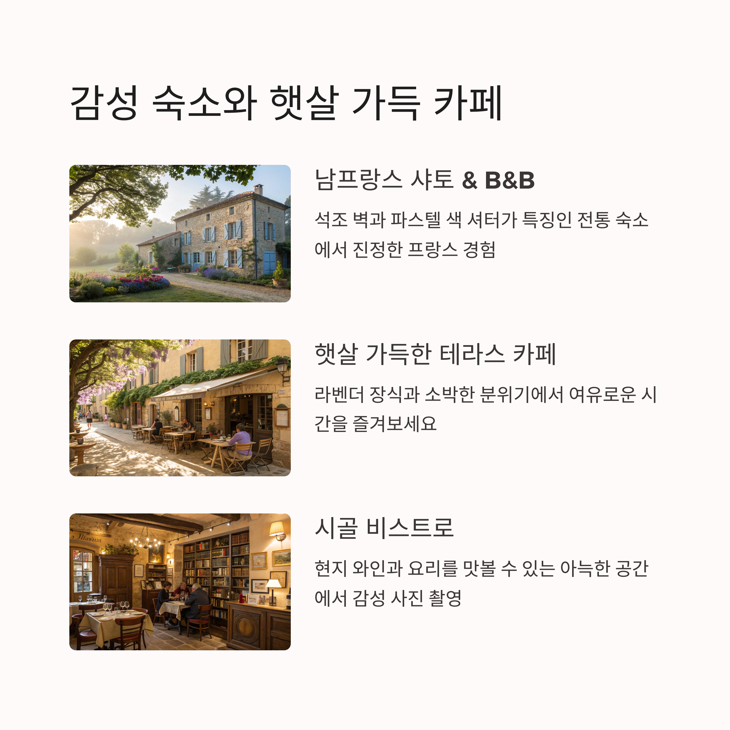 인스타 감성 여행을 위해서는 장소 선정도 중요하지만 시기와 날씨도 큰 영향을 줍니다. 라벤더 시즌인 6~7월, 햇살이 좋은 시간대에 맞춰 여정을 계획해보세요. 여유롭게 산책하고, 감성 있는 카페에서 쉬며, 골목마다 사진을 찍는 여정은 그 자체로 힐링입니다. 프랑스 남부는 감성적인 감동을 오롯이 느낄 수 있는 특별한 공간입니다.
