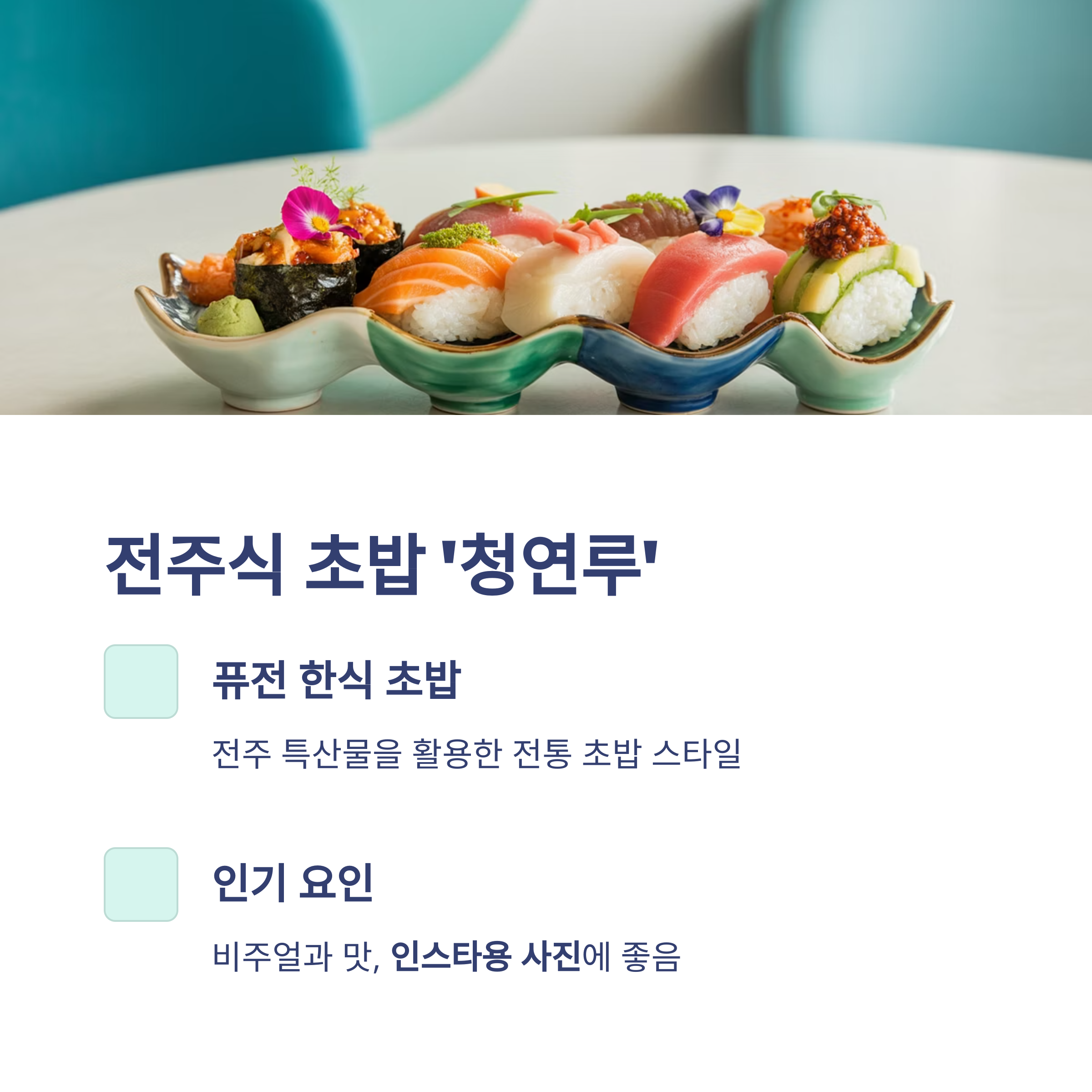 | 퓨전 | 청연루 | 전통초밥 | 비주얼+맛 |