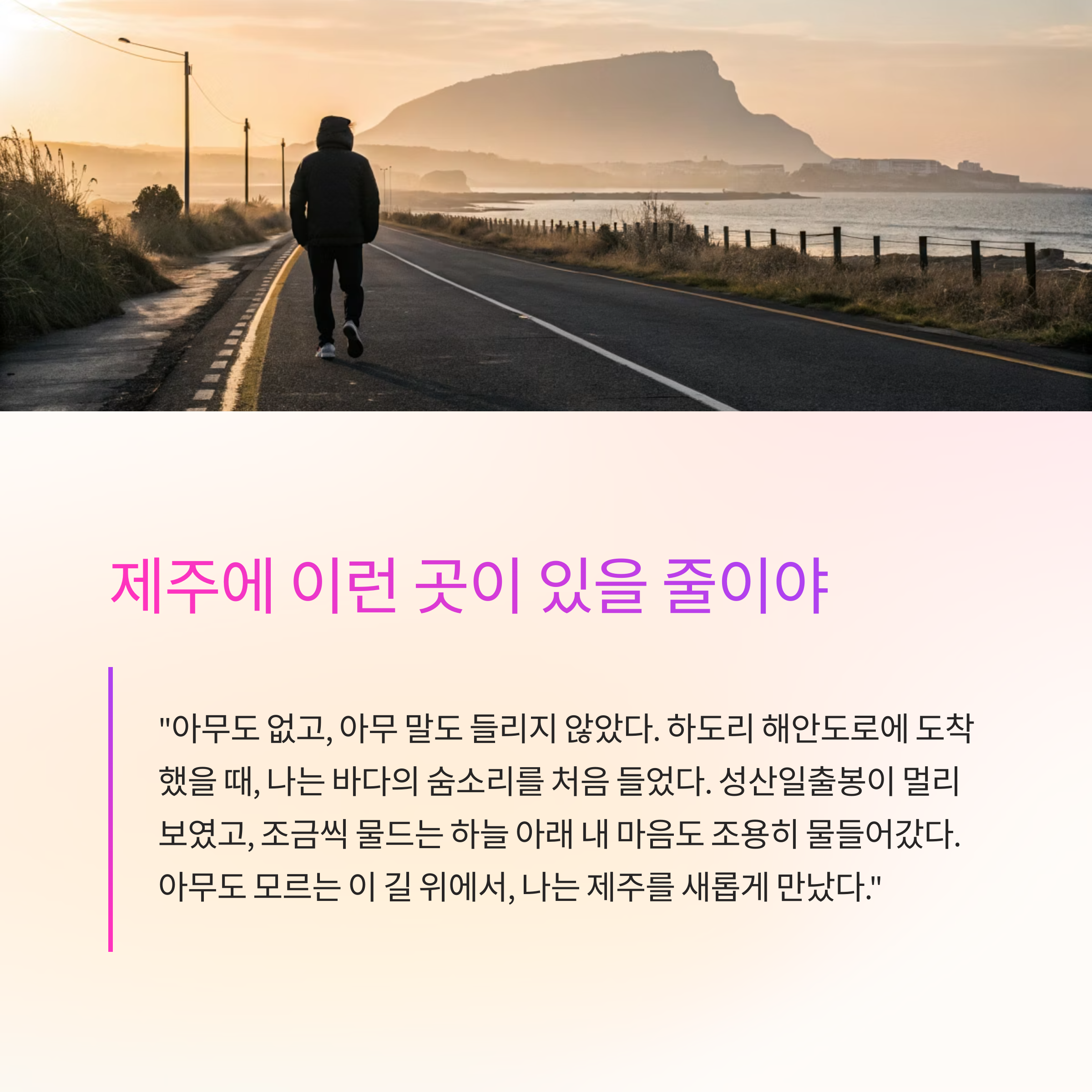 아무도 모르는 이 길 위에서, 나는 제주를 새롭게 만났다."
