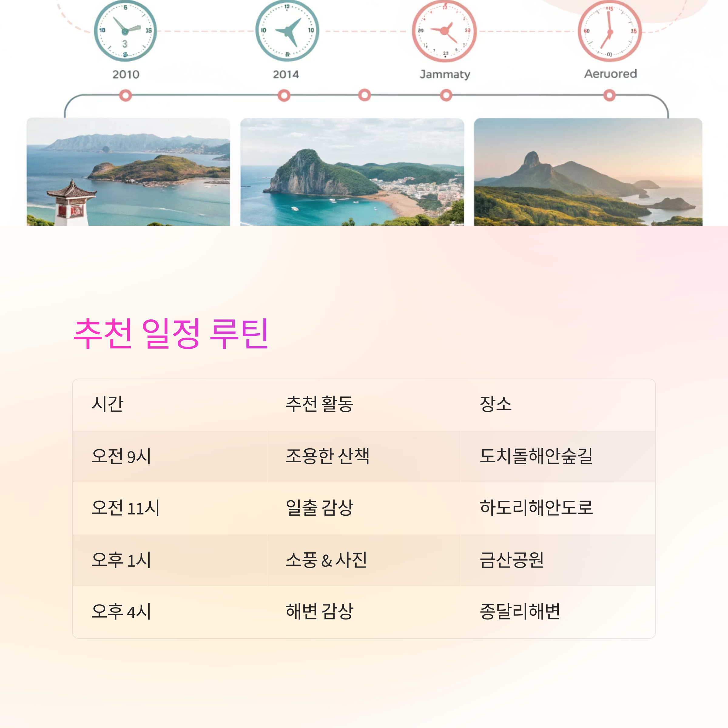 | 오전 11시 | 일출 감상 | 하도리해안도로 |