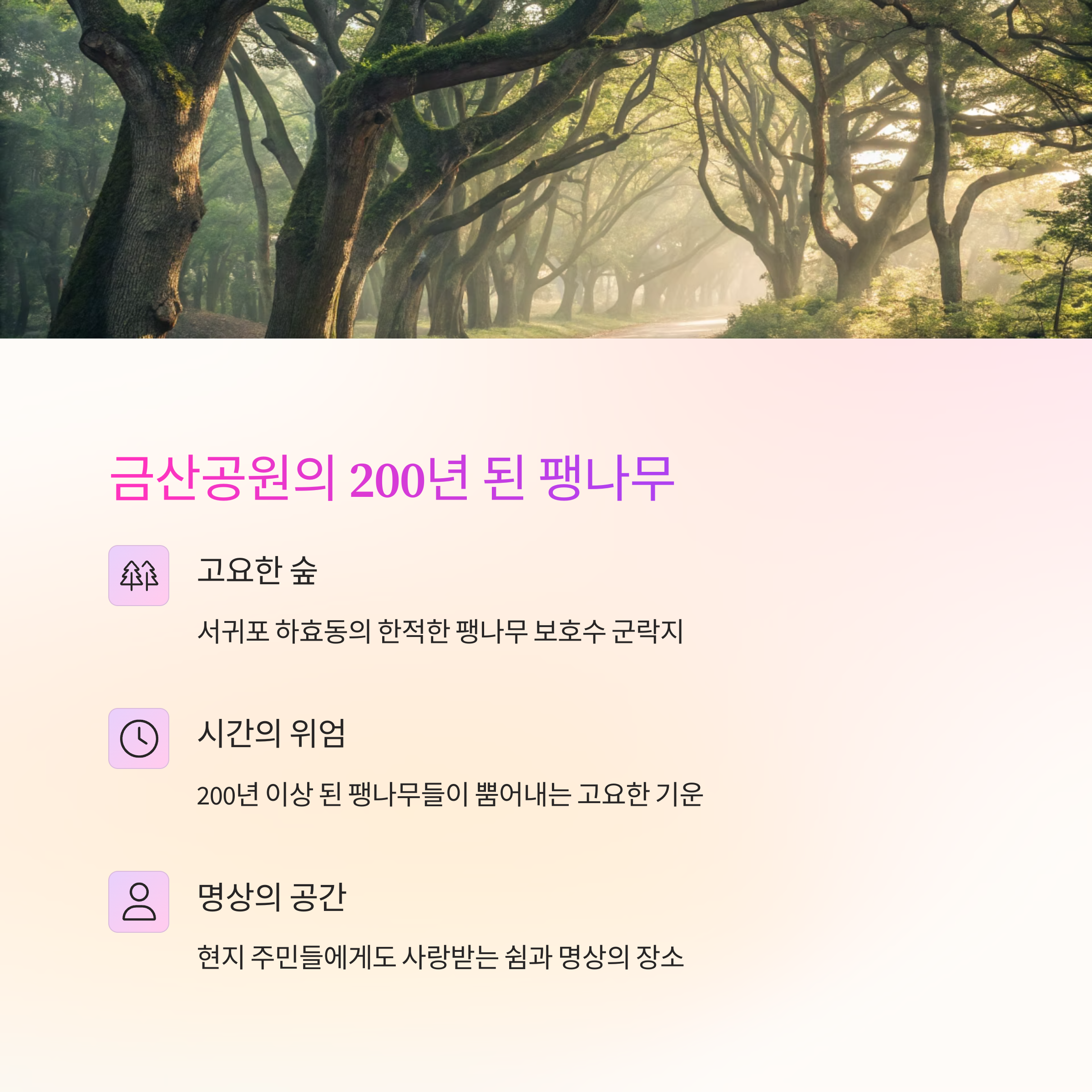 | 금산공원 | 서귀포 | 200년 팽나무 숲 |