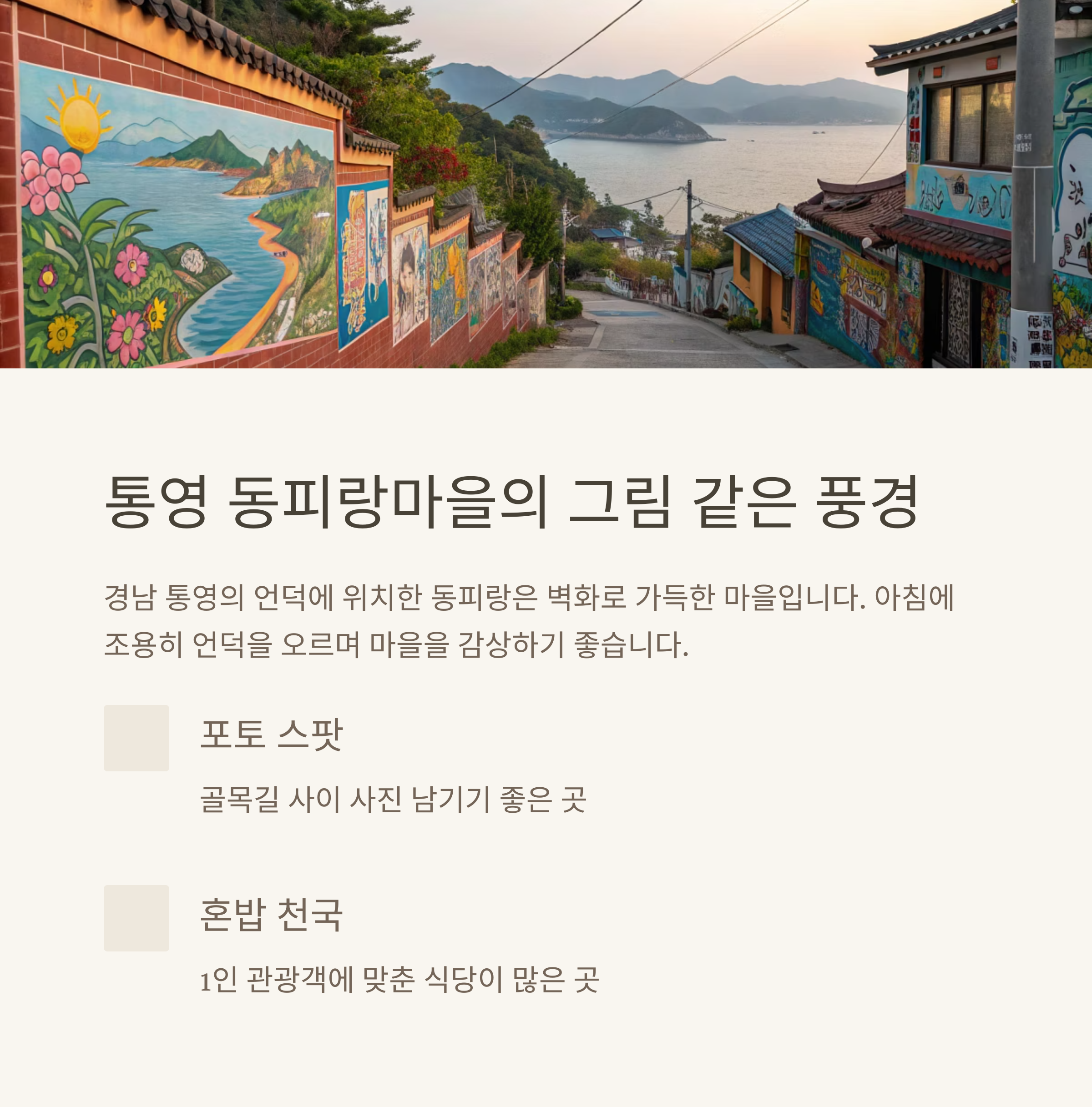 통영 동피랑마을, 그림 같은 혼자만의 포토 스팟