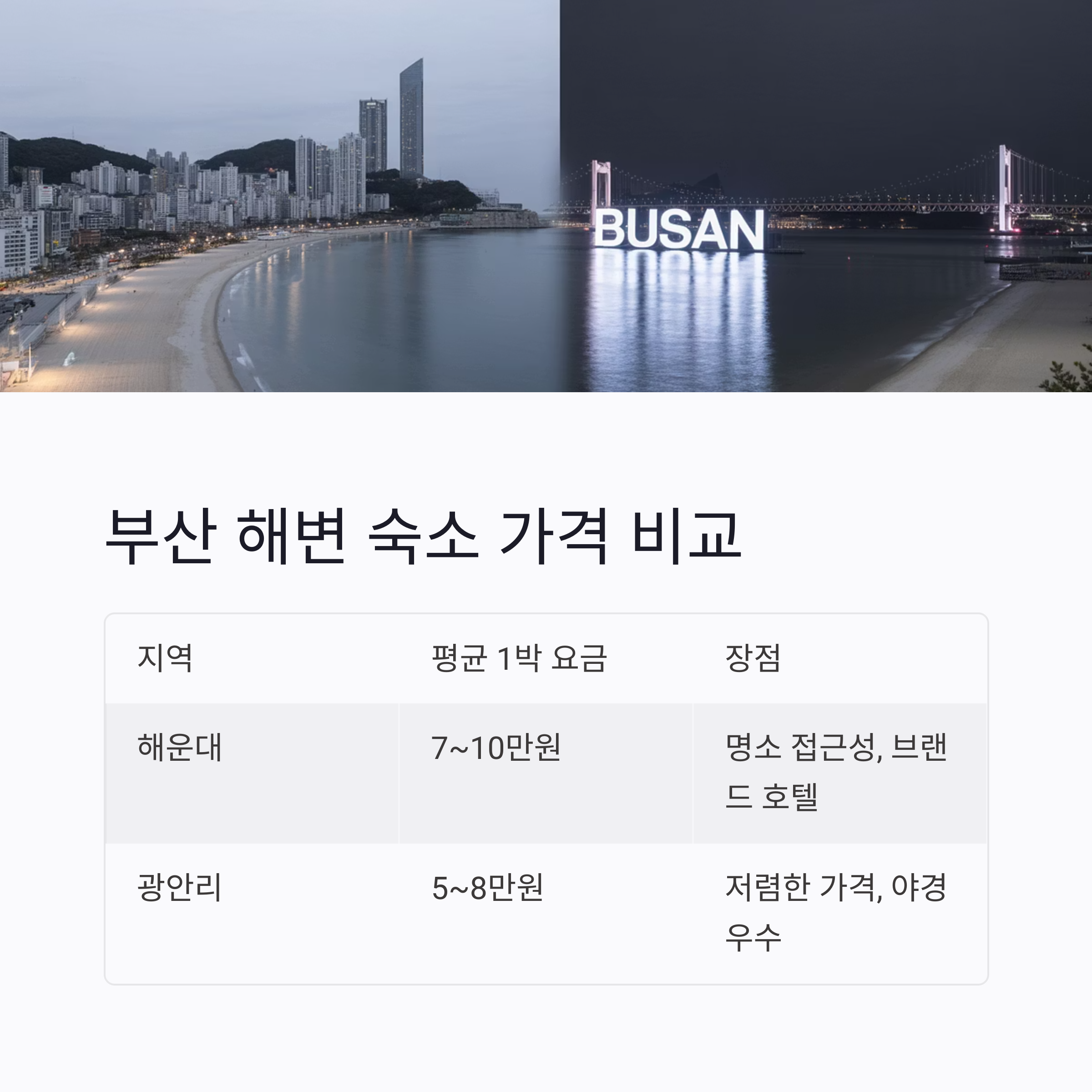 | 해운대 | 7~10만원 | 명소 접근성, 브랜드 호텔 많음 |
